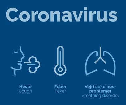 Får du symptomer der kan komme fra Coronavirus (det vil sige: feber over 38 og enten hoste, ondt i halsen eller vejrtrækningsbesvær), indtil 14 dage efter du kan være udsat for smitte, er det vigtigt, at du ringer til os, og IKKE blot møder op.